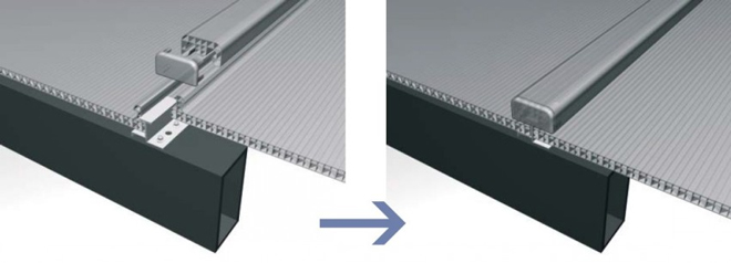 U型材(PC或鋁制)或鋁制F型材密封住板材的上端。