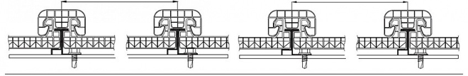 沿著板材,在主檁的剩余部分(見次檁設(shè)計跨度表),將丁字緊固件對著板材,用六角頭螺絲固定住(標準用2個,強風(fēng)和龍卷風(fēng)地區(qū)用3個)。